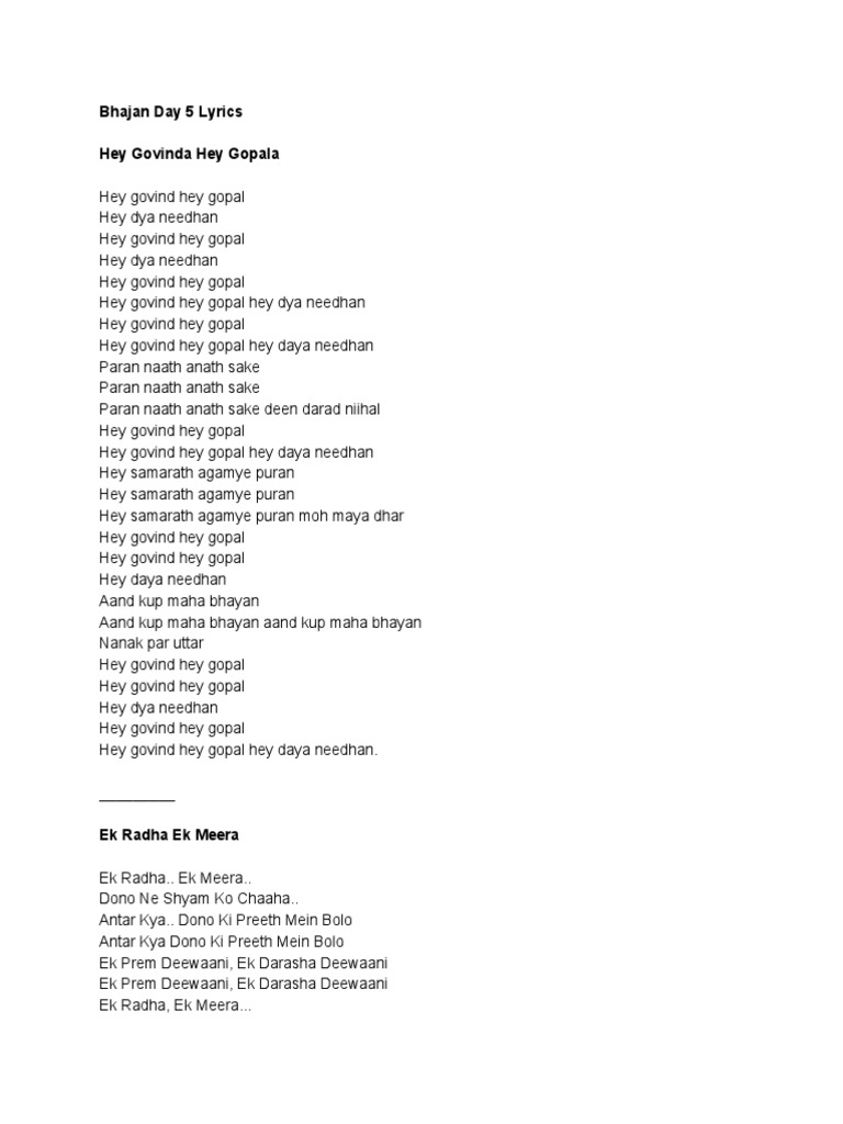 Hey Govind Hey Gopal Lyrics November 27, 2020Entertainment Hey Govind Hey Gopal Lyrics / Hey samarath agamye puran moh maya dhar hey govind hey gopal hey govind hey gopal hey daya needhan aand kup maha.